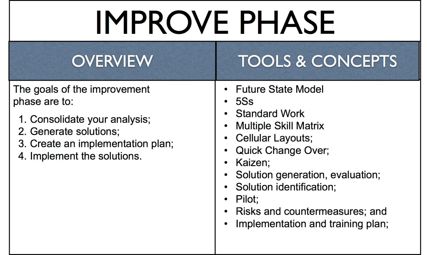 This time it went well. We as a team planned, prepared, trained and looked at the calendar to finally decide when to implement. Here are a few of the tools that we used and that you might decide to use when going through the improve stage of a lean project.